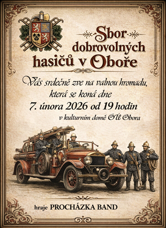 Zdravím a svolávám všechny členy JPO SDH Obora na den 10.01.2026 od 08.30 hod. k novoročnímu prvnímu školení a sezení jednotky do nové hasičské zbrojnice. Účast všech velmi nutná.