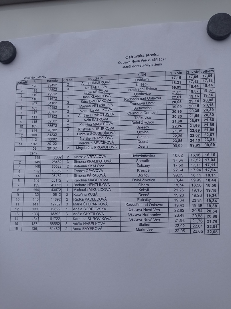 Výsledky 2023 - ženy