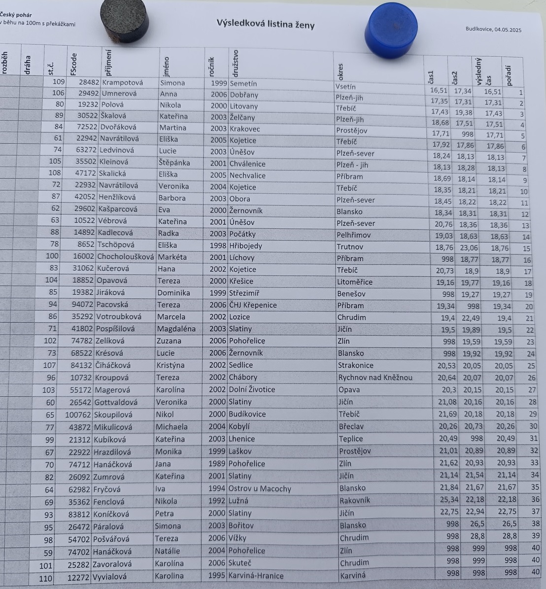 | 26.4. | Březnice - běhy na 60 m s př. | jpg pdf | |||